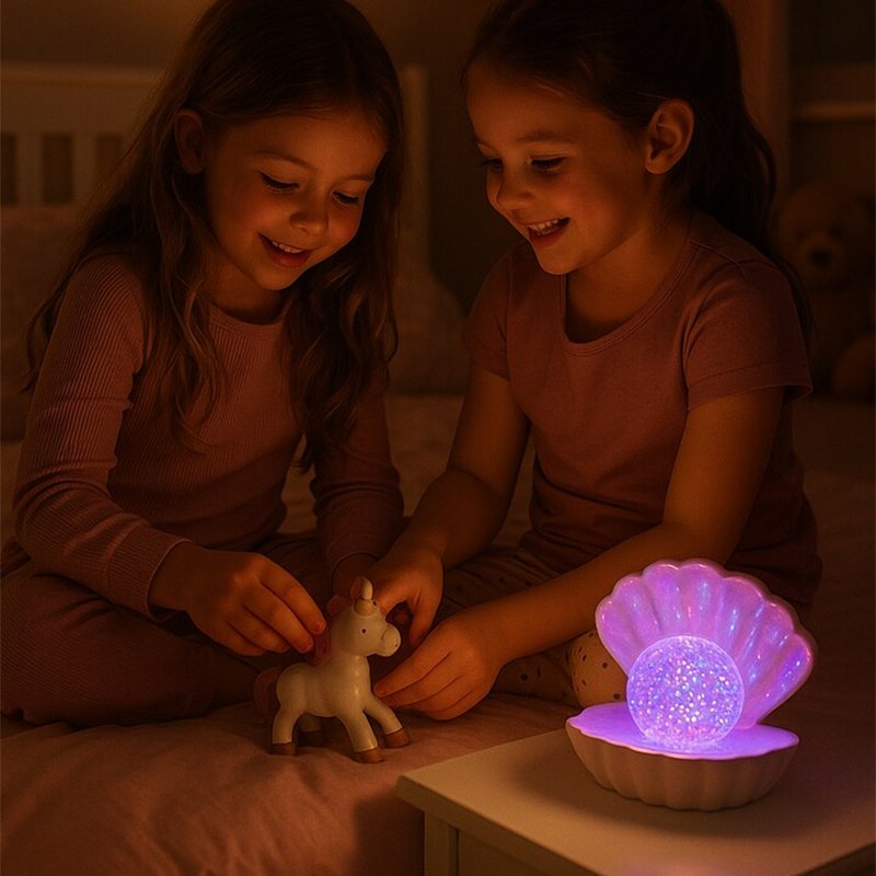 Dekorativna lampa Sparkly donosi romantičan i efektnan ambijent zahvaljujući svom jedinstvenom dizajnu u obliku otvorene školjke sa providnom sferom koja svetluca poput bisera. Ugrađeni LED izvor sa RGB efektima pravi čarobnu atmosferu u dnevnoj, spavaćoj ili dečjoj sobi, a lampa se lako postavlja na sto, policu ili noćni ormarić. Punjenje preko USB kabla. |