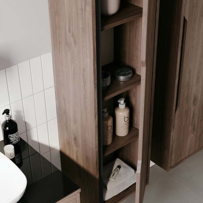 Vertikala GALIA 40 LIDIA spaja toplinu rustičnih tonova sa savremenim dizajnom, unoseći sklad i funkcionalnost u kupatilo. Izrađena je od melaminskog medijapana otpornog na vlagu i ogrebotine, što obezbeđuje dugotrajnost u svakodnevnoj upotrebi. Unutrašnjost ormarića sadrži praktične police koje omogućavaju uredno i pregledno odlaganje kozmetike i drugih potrepština.