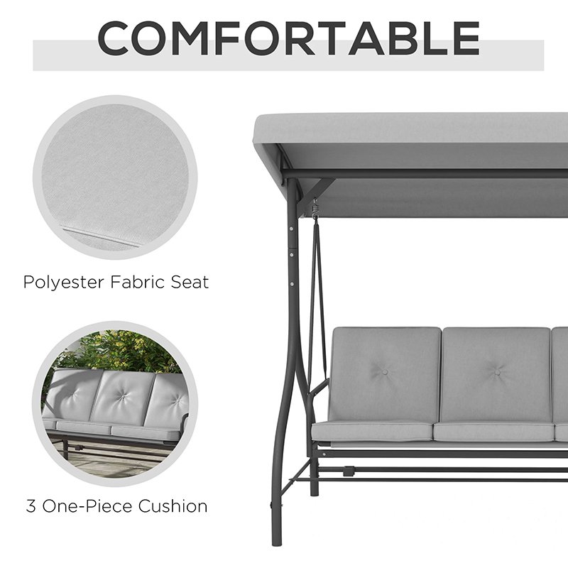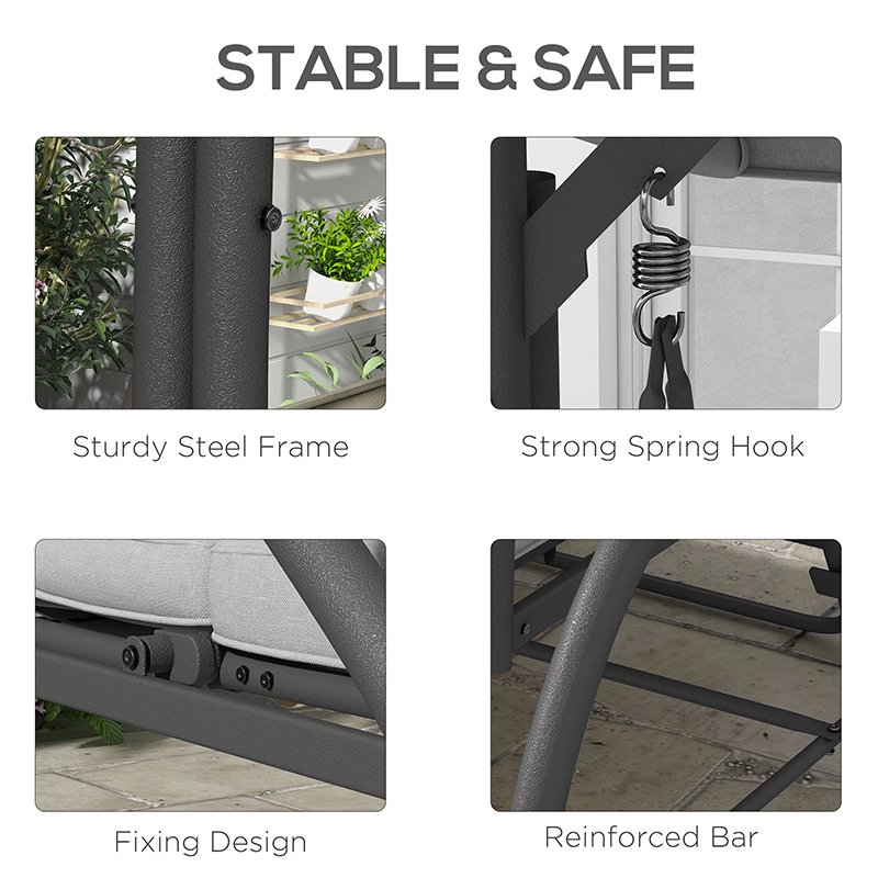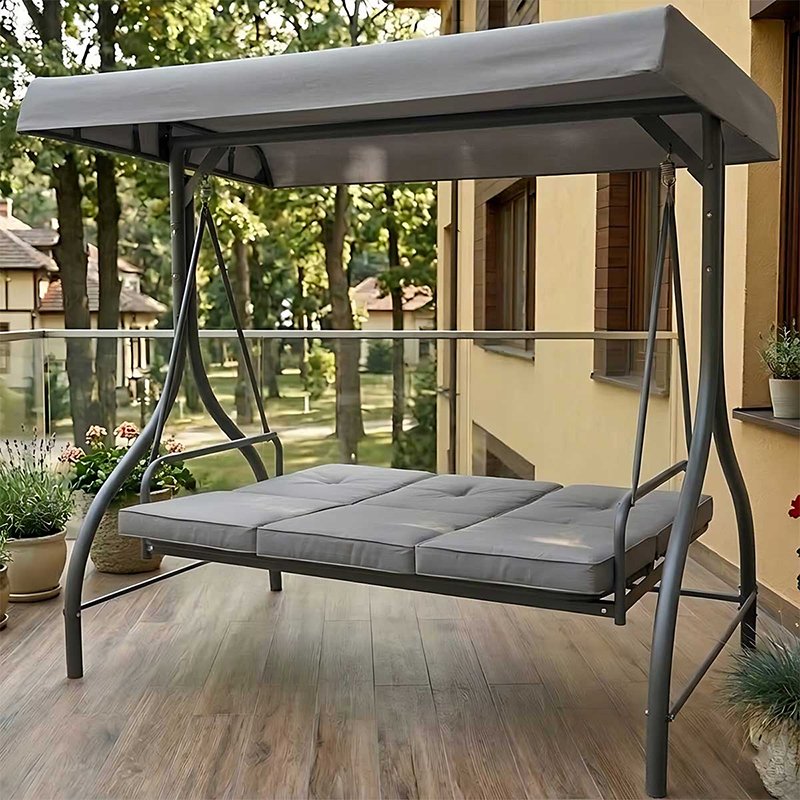 | Set sadrži: | (DxŠxV) | | Ljuljašku | 194 x 120 x 174 cm | | Jastuk | 8 cm (160 g poliester) | | Tendu | 180 g/m² poliester | | Materijal | metal, plastika, PE | | Boja | antracit, siva | Baštenska ljuljaška SLAVICA pruža savršen spoj udobnosti i funkcionalnosti, uz mogućnost jednostavnog pretvaranja iz ljuljaške u krevet pomoću dve kopče. Konstrukcija je izrađena od visokokvalitetnog čelika sa zaštitnim praškastim premazom koji obezbeđuje dugotrajnost i otpornost na spoljne uslove, dok su sedište i naslon od izdržljivog tekstilena. Podesivi krov od poliestera štiti od sunca i lakih padavina, a usklađena antracit kombinacija konstrukcije i sivih jastuka daje elegantan izgled idealan za terasu ili baštu. | Informacije o montaži | Potrebno montiranje | | Težina | 41 kg |