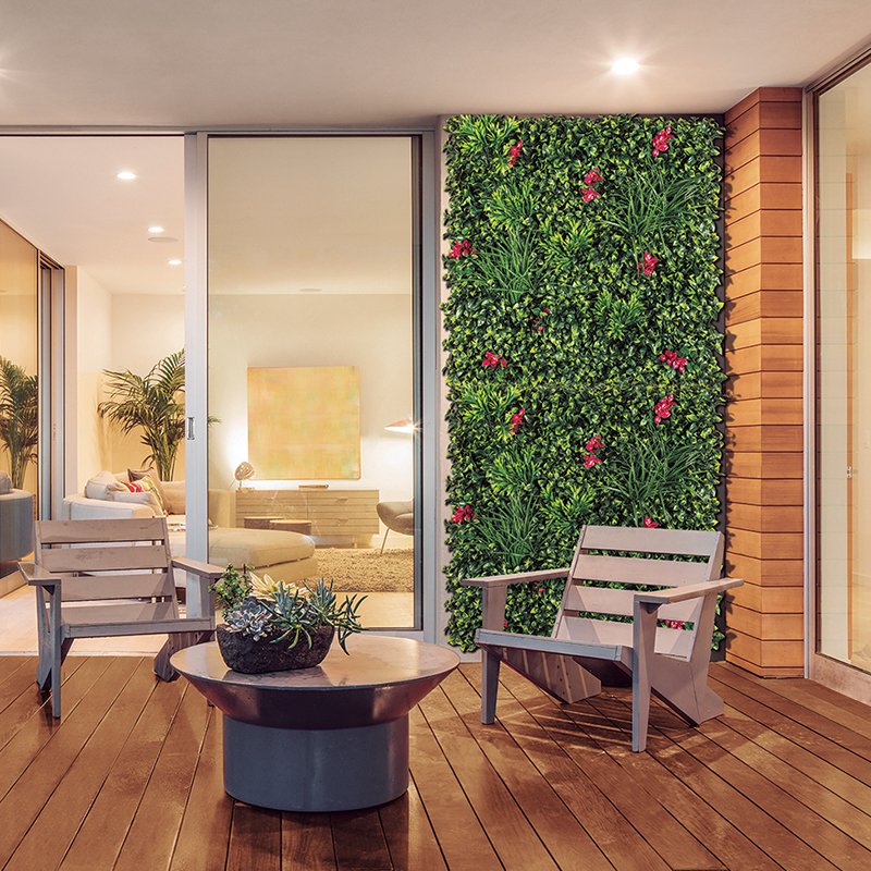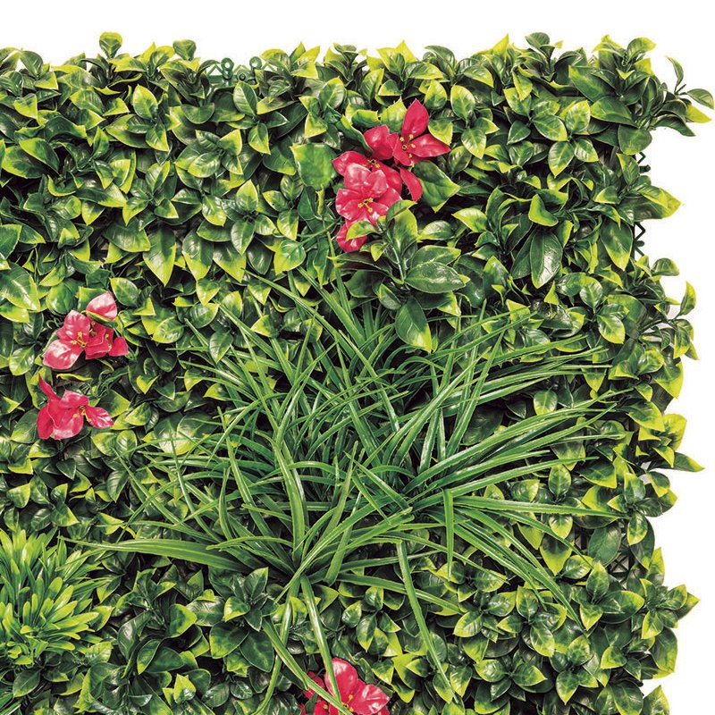 | Dimenzije | 100 x 100 cm | | Dekoracija | cvet Bugenvilije | | Boja podloge | zelena | | Materijal | plastika, sintetika | | Moguće skratiti | da | | Spojivo u celinu | da | | Upotreba | unutrašnja, spoljašnja | Vertikalni vrt sa cvetovima bugenvilije donosi dekorativno rešenje za unutrašnje i spoljašnje prostore. Sintetičko lišće i cvetovi postavljeni na mrežastu podlogu omogućavaju lako povezivanje više jedinica u celinu, dok se plastična osnova može prilagoditi makazama. Ovaj vrt unosi mediteransku toplinu i romantičnu atmosferu u svaki ambijent. Za sve informacije o dostupnosti, cenama i načinima kupovine pozovite broj: