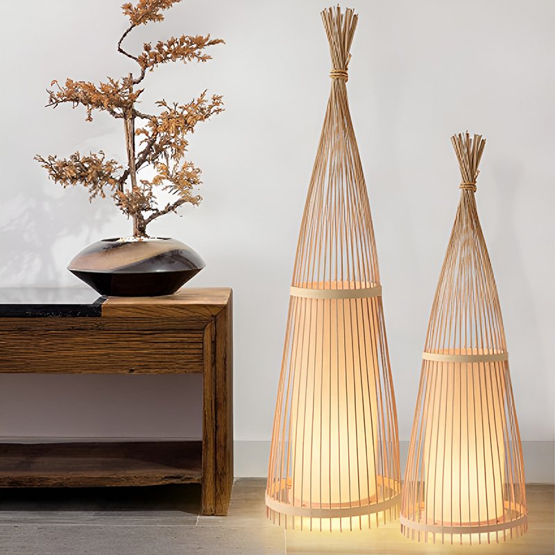 Podna lampa F7855-1FL NT izrađena je od prirodnih listova bambusa u prepoznatljivom kineskom stilu, donoseći toplinu i egzotičnu eleganciju u vaš prostor. Ručno pletena struktura stvara prijatno, difuzno svetlo i zanimljive senke, čineći svaki komad unikatnim i savršenim za dnevne ili spavaće sobe. |