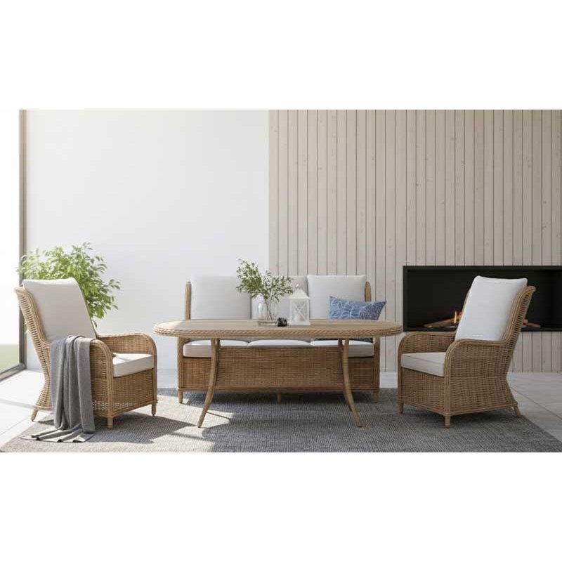 | Set sadrži: | Dimenzije: ( D׊×V ) | | Trosed ( x1 ) | 88 × 167 × 96 cm | | Fotelje ( x2 ) | 88 × 60.5 × 96 cm | | Sto ( x1 ) | 180 × 90 × 72 cm | | Jastuci ( x4 ) | 200 g/m² olefin tkanina | | Materijal | PE ratan, aluminijum, polywood površina | | Boja | natur, krem bela | Sa svojim zaobljenim naslonima, novim elegantnim oblikom rukonaslona i pažljivo biranim materijalima, Palmera je garnitura koja donosi luksuz, udobnost i dugotrajnost, savršena za uživanje u otvorenom prostoru uz stil koji nikada ne prolazi. Uz elegantan dizajn, kvalitetne materijale i prirodan izgled ratana, Palmera stvara idealnu atmosferu za uživanje, bilo da ispijate kafu, ručate napolju ili jednostavno odmarate na svežem vazduhu. | Informacije o montaži | Potrebno montiranje | | Težina | 77 kg |