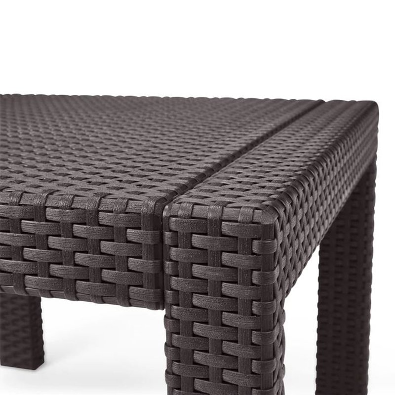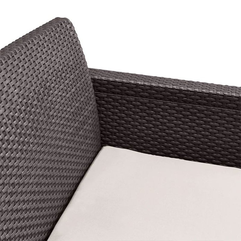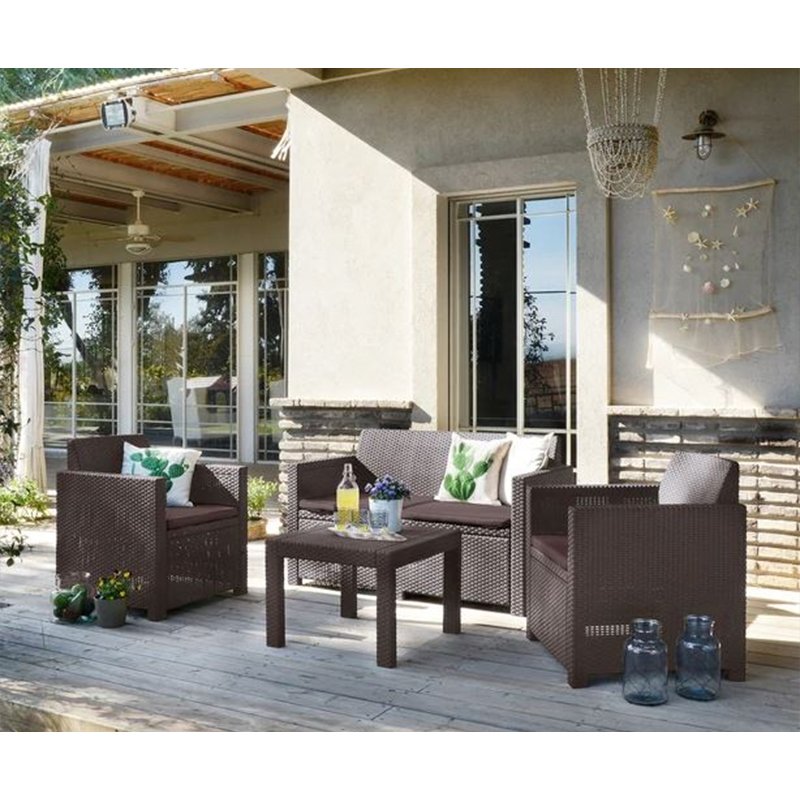 | Set sadrži: | Dimenzije: ( D׊×V ) | | Dvosed ( x1 ) | 129 x 67 x 77 cm | | Fotelje ( x2 ) | 65 x 67 x 77 cm | | Sto ( x1 ) | 59 x 59 x 43 cm | | Jastuci ( x4 ) | 180 g/m² | | Materijal | PE ratan | | Boja | braon | Baštenska garnitura Georgia braon Curver sastoji se od dve udobne fotelje, dvoseda sa mekanim jastucima i kvadratnog stočića za kafu. Privlačna struktura pletenog ratana u braon boji i zaobljeni rukonasloni daju garnituri elegantan izgled koji se lako uklapa u svaki enterijer ili eksterijer. Izrađena je od kvalitetnog PE ratana otpornog na oštećenja, UV zračenje i različite vremenske uslove, što je čini dugotrajnim i praktičnim izborom za terasu ili baštu.