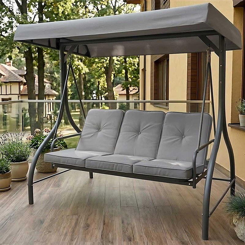 | Set sadrži: | (DxŠxV) | | Ljuljašku | 194 x 120 x 174 cm | | Jastuk | 8 cm (160 g poliester) | | Tendu | 180 g/m² poliester | | Materijal | metal, plastika, PE | | Boja | antracit, siva | Baštenska ljuljaška SLAVICA pruža savršen spoj udobnosti i funkcionalnosti, uz mogućnost jednostavnog pretvaranja iz ljuljaške u krevet pomoću dve kopče. Konstrukcija je izrađena od visokokvalitetnog čelika sa zaštitnim praškastim premazom koji obezbeđuje dugotrajnost i otpornost na spoljne uslove, dok su sedište i naslon od izdržljivog tekstilena. Podesivi krov od poliestera štiti od sunca i lakih padavina, a usklađena antracit kombinacija konstrukcije i sivih jastuka daje elegantan izgled idealan za terasu ili baštu. | Informacije o montaži | Potrebno montiranje | | Težina | 41 kg |